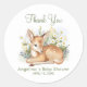 Stickers vous remercie pour le baby shower avec adorable aquarelle fawn niché au milieu des fleurs.