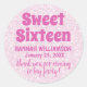 Texte rose rose rose rose rose sur arrière - plan rose texturé doux. Le sweet sixteen est écrit dans un texte rose gras. Votre nom et votre anniversaire sont écrits dans une simple police rose profonde. Le Merci d'être venu à ma fête est dans le même rose, mais il semble plus léger, parce que c'est une police de script mignonne. Une façon rose douce de remercier vos invités pour avoir partagé votre journée avec vous.