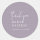 Ces autocollants modernes chic lavande violet de remerciement sont parfaits pour une simple réception de mariage. Le design boho minimal présente une typographie bohème rustique unique et élégante, dans une couleur violet clair et poussiéreuse. Personnalisez les étiquettes autocollants avec vos noms, et la date. Ces autocollants peuvent être utilisés pour une réception de mariage, une douche nuptiale ou tout événement!