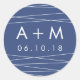 Personnalisez ces sceaux simples avec vos initiales et votre date mariage pour une façon chic de terminer vos invitations, faveurs et plus encore. Le design présente du lettrage blanc propre sur un arrière - plan bleu foncé, quadrillé de lignes géométriques blanches. Conçu pour correspondre à notre collection de faire-part de mariage Lineation en Acier Bleu.
