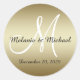 Un sceau d'enveloppe de mariage monogrammé personnalisé en or brillant ajoute cette touche d'élégance supplémentaire à votre envoi d'invitation de fête d'anniversaire mariage. Stickers Monogramme Mariage doré. Conception par Elke Clarke ©. Or métallique imprimé (effet photo artistiquement rendu). Les autocollants monogrammes personnalisés sont parfaits pour le sceau d'enveloppe sur les enveloppes d'invitation du 50e anniversaire du mariage. Les autocollants monogrammes élégants vous feront aussi plaisir lors de vos fêtes de mariage, de vos sacs sucrés mariages ou de vos boîtes à gâteaux mariages. Personnalisez avec vos noms de mariée et de mariée, date initiale monogramme et date mariage. Choisissez ensuite parmi une variété de formes et de tailles.