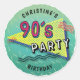 Les autocollants de la fête des années 90 avec une typographie amusante de la fête des années 90. Le design comprend des éléments de bleus, d'oranges et de roses, de jaunes, de bords arrachés, de motifs géométriques et de formes inspirées des années 90. Inclut un modèle pour la personnalisation personnelle.