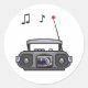 Écouter de la musique est quelque chose que la plupart d'entre nous aime faire. Maintenant vous pouvez montrer à quel point vous aimez écouter de la musique avec ce design cool d'une musique de radio. Ce design montre une radio avec quelques notes musicales dans l'air au-dessus. Cette musique radiane joue beaucoup sur ces autocollants. Parfait pour vous-même ou comme cadeau