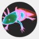 Un axolotl rose néon et bleu sur un arrière - plan noir.