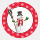Cet autocollant de style rond est montré avec une jolie imprimé de bonhomme de neige de Noël festif. Customisez cet objet ou achetez tel quel.