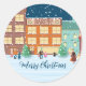 Des autocollants Whimsical Holiday avec l'illustration de gens qui se promènent en ville dans une soirée enneigée. Le texte original dit : "Joyeux Noël" mais vous pouvez le remplacer par le vôtre si vous le souhaitez. Idéal pour utiliser comme enveloppe scellée, favoriser le sceau de sac ou comme décoration sur les cadeaux de Noël. © ArianeC Illustrations-Tous droits réservés