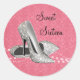 Baguettes de chaussures à talon élevé, assez roses et parties scintillant. Vous pouvez ajouter du texte pour personnaliser ce mignon autocollant à chaussure à talon élevé rose damassé.