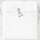 Une figurine en bâton de fille qui monte un skateboard sur des autocollants personnalisables.