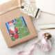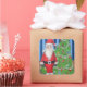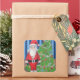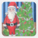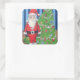 Ce portrait de Père Noël est une illustration originale en crayon coloré d'Angela Hoard-Dunn. Ces autocollants montrent un Père Noël mignon devant un arbre de Noël qui est décoré de nombreux ornements amusants et uniques. Père Noël sourit timidement et on dirait qu'il se fait photographier.