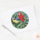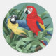 Deux macaws sur des autocollants ronds.