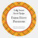 Un motif rétro en plaid ginham de jaune et d'orange avec des rayures brun et vert plus petites sur des autocollants de conserverie personnalisés avec script et lettres vintages pour votre nom ou petite entreprise, le titre de la recette et l'espace pour les ingrédients, le poids, l'adresse, ou plus d'informations.