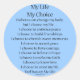 Support autocollant présente le poème de sensibilisation inspirationnel pour le diabète de "My Life, My Choice". Faites des autocollants personnalisés de soutien au diabète à l'aide d'options personnalisées pour montrer votre sensibilisation au diabète chez les jeunes diabétiques de type 1 ou 2. Offrez à quelqu'un des cadeaux étiquettes autocollants poème sur le diabète spécial. Ma vie, mon choix Le diabète peut changer mon corps, mais je choisis ma vie... Je choisis d'embrasser la paix. Je choisis de construire des amitiés. J'ai choisi de chérir de doux souvenirs. Je choisis d'accepter la grâce. Je choisis d'avoir du courage. Je choisis de croire en l'espoir. Je choisis de saluer la foi. Je choisis de connaître l'amour. Je choisis de vouloir ma vie. Sentez la beauté, ma vie - Par Laurel Latto
