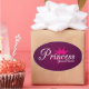 Ce produit est parfait pour une fête d'anniversaire d'enfant, un baby shower, un cadeau, etc. Il présente un arrière - plan tourbillon violet tendance avec le mot "princesse" dans une police à script blanc. Une tiare rose est assise au-dessus des mots. Customisez l'élément pour inclure votre nom ou supprimez le texte.
