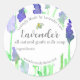 Un joli étiquette autocollant décoré de fleurs de lavande illustrée d'aquarelle avec un cercle blanc pour inclure vos détails d'affaires et la liste des ingrédients. Une petite abeille de miel accentue la partie supérieure de l'autocollant. Modifiez le texte avec les détails de votre entreprise.