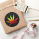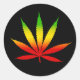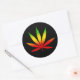 Feuille de rasta © Sunny Mars Designs. Autocollants ronds personnalisés Jamaïcains Reggae Rasta Leaf cool avec une silhouette d'une feuille rastafarienne aux couleurs jamaïcaines vertes, jaunes et rouges.