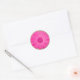 Stickers Rustique Hot Rose Fuchsia Gerber Daisy Rond Sceau avec un arrière - plan vintage brun. Ils ont une dentelle imprimée et un design de ficelle sous la marguerite rose. Ils sont parfaits pour envoyer des invitations de mariage.