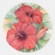 Stickers ronds à fleurs rouges Hibiscus Aquarelle