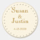Accentuez votre enveloppe ou tout autre souvenir de votre occasion spéciale en utilisant ce Stickers ronds Simple Elegance sans prétention. En utilisant les fonctions de personnaliser simples d'utilisation avec cette carte, vous pouvez modifier le texte pour inclure toutes vos informations personnelles. Pour modifier le texte des détails du mariage, utilisez les options de personnalisation. Pour les modifications plus importantes, telles que les modifications apportées à la police, à la couleur de police, à la taille de police, au placement du texte ou à la couleur arrière - plan, utilisez l'option customiser. Simple Elegance Cream donne l'apparence de couches de papier gaufré accentuées par une bordure environnante de points gaufrés. Coordonnez tous vos besoins en papeterie avec cette crème Simple Elegance.