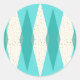 Ces Stickers Rond Jacquard Moderne du Milieu du Siècle disposent d'un arrière - plan turquoise et dynamique et d'un motif de diamants turquoises mod et translucides recouvrant de grands diamants vintages de couleur or, des taches d'âge spatial. Ce Jacquard minimaliste d'inspiration et déconstruit est un retour simpliste de l'ère atomique plus grande que la vie qui a dominé le paysage décoratif des années 1950 et 1960. Ce design kitsch rappelle tout, des panneaux de bowling rétro Palm Springs aux plateaux de télévision que vous utilisiez chez votre grand-mère.