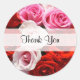 Un ensemble d'autocollants de remerciement ronds avec des roses en rouge, rose et blanc. Parfait pour les amateurs de rose. Les mots "merci" sont personnalisables