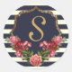 Roses élégantes, chic, et pays rouge et rose avec bandes bleu marine et ivoire blanc et faux imprimé or, autocollants monogramme. Ce design classique et sophistiqué est parfait pour une femme classe, branchée et élégante. Personnalisez avec vos propres initiales de monogramme customisées. Toute la conception d'impression photo.