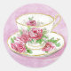 Mon aquarelle originale de tasse et soucoupe avec un beau design floral de roses roses roses, comme autocollants.