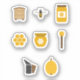 Un ensemble d'autocollants pour apiculteurs ou amateurs d'abeilles. Il comprend la ruche, l'abeille, le miel, le fumeur d'abeilles et la cuillère à miel.