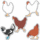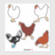 Cinq contours simples de différents poulets, dont un coq de roche blanc, une poule rouge de Rhode Island, une poule polie, un lien sexuel rouge et une poule de roche blanche.