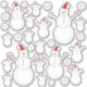 Ce design à thème de Noël présente des représentations de bonhomme de neige portant des chapeaux de Noël rouges, ainsi que des représentations de flocons de neige gris.