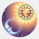 Ce design autocollant montre l'Homme dans la Lune et le visage du Soleil contre un ciel étoilé et coloré.