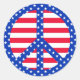 Des étoiles et des rayures rouges, blanches et bleues brillantes sont disposées sur un symbole de paix.