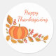 Grand autocollant rond avec imprimé citrouille Thanksgiving. Customisez cet objet ou achetez tel quel. com.