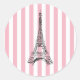 Profitez de nos Stickers Tour Eiffel à rayures roses. Idéal pour la décoration de fête (place sur les sacs de faveur, les tasses, etc.).