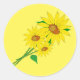 Autocollant rond montré avec un imprimé de tournesol mignon. Customisez cet objet ou achetez tel quel. com.