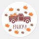 Cet autocollant cadeau dit "Profitez" en marron avec un camion plein de citrouilles. Il s'agit d'un grand ajout aux produits de boulangerie ou aux gâteries que vous faites pour vos amis et votre famille.