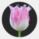 Une seule tulipe à franges roses sur un arrière - plan noir solide. Photographie originale de Laura J Miller.