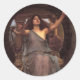 John William Waterhouse Circe Offering the Cup to Odysseus stickers. Peinture à l'huile sur toile de 1891. Le peintre anglais John Waterhouse’s Circe Offering the Cup to Odysseus dépeint une scène classique de l’Odyssée d’Homer. La déesse Circe est assise sur un trône portant une robe à gaine offrant un gobelet plein de potion à Ulysse. Le sol est parsemé de fleurs violettes et un miroir derrière la déesse révèle l'hésitant Ulysse en robe violette. Un grand cadeau pour les amateurs de J.W. Waterhouse, mythologie grecque, Pré-Raphaélites, Ovid, et de peinture romantique anglaise.