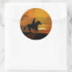 Un grand autocollant sur le thème occidental d'un cowboy à cheval dans un coucher de soleil. Une pièce de photographie d'art occidental. Une excellente façon d'ajouter un thème de pays occidental ou cowboy à vos projets ou à votre correspondance.