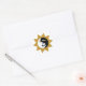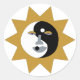 Un soleil d'or avec sa face sur un yang de ying noir et blanc sur un autocollant
