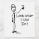 Always humourous, stickman says "look what I can do!" as he holds up his wine glass. Done in black and white. Funny and cute. I offer the matching wine bag. Message personalization is optional.