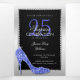 Beautiful silver and black colored Photo 25th surprise birthday invitation with QR Code for quick and easy reply/information. A pretty all in one invite to celebrate twenty five years.. A glamorous silver diamond frame on a black and silver background encase your event details. With added images of stylish glitzy treble clefs and a rhinestone jewel diamond stiletto high heel shoe. All text is fully customizable to meet your requirements. If you would like help with anything please contact me through my store and i will be very happy to help you. Your QR code will be automatically generated to update the sample code in the design, when you simply change the sample URL in the template with your own event website URL. Please order each invitation separately if you wish to utilize this option of personalizing each invitation with your recipients' name and address to save handwriting them. TIP: complete the rest of the invitation details first, then put your first recipients name and address details here. Once you have added your first invite to your cart, you can click on the image of it in your cart, which will take you back to the product then simply add your next recipients name and address. It won't override the previous ones already in your cart. PLEASE NOTE you can delete this text if you prefer to order in bulk and add your recipient name and address details upon receipt.