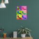 Poster in Mid-Century style poster art of stiletto pumps / high heels in multiple, bright primary colours