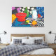 This canvas print features a kitchen table showcasing various coloured patterns plus fruit and kitchen utensils with bright colours in this fauvism style and theme. Our prints are printed with the highest resolution on cotton-poly archival paper, for a long-lasting fade resistant print measures. This print will make for the perfect addition to brighten up any home or office.