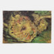 Two Cut Sunflowers by Vincent van Gogh is a vintage fine art post impressionism still life floral nature painting. Part of a series of sunflowers featuring 2 withering, wilting and dead flowers from the garden.