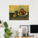 Still Life with Apples (1890) by Paul Cezanne is a vintage post impressionism fine art painting. A variety of fruit with some on a table and others on a serving plate in the kitchen.