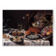 This is an oil still life painting by Pieter Claesz titled "Still life with Turkey Pie".