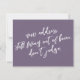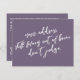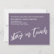 In this piece, the hand-lettered script font was used to create graphics depicting the words "new address. still living out of boxes. don't judge." on the front, and "stay in touch" on the back. The dark, dusty purple (Pantone's "grape compote" background can be changed to any colour you prefer. Please reach out with any special requests or for customizing assistance. // 100 //