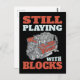 Cool cars and motors theme design showing an engine block and the funny quote "Still playing with blocks". Perfect for car lovers, especially for car mechanics and motorcycle mechanics.