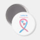 Stillbirth uses a pink and blue ribbon to support awareness for its cause. The custom magnet features an awareness ribbon heart art magnet with the message "Stillbirth Awareness". The NIH defines pregnancy loss as "when a pregnancy ends unexpectedly before the 20th week. It is sometimes called early pregnancy loss, mid-trimester pregnancy loss, miscarriage, spontaneous abortion, or fetal demise." The NIH states "stillbirth refers to the death of a fetus at or after the 20th week of pregnancy."
