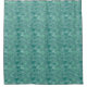Cool blue shower curtain printed with a pattern of stingrays swimming underwater.